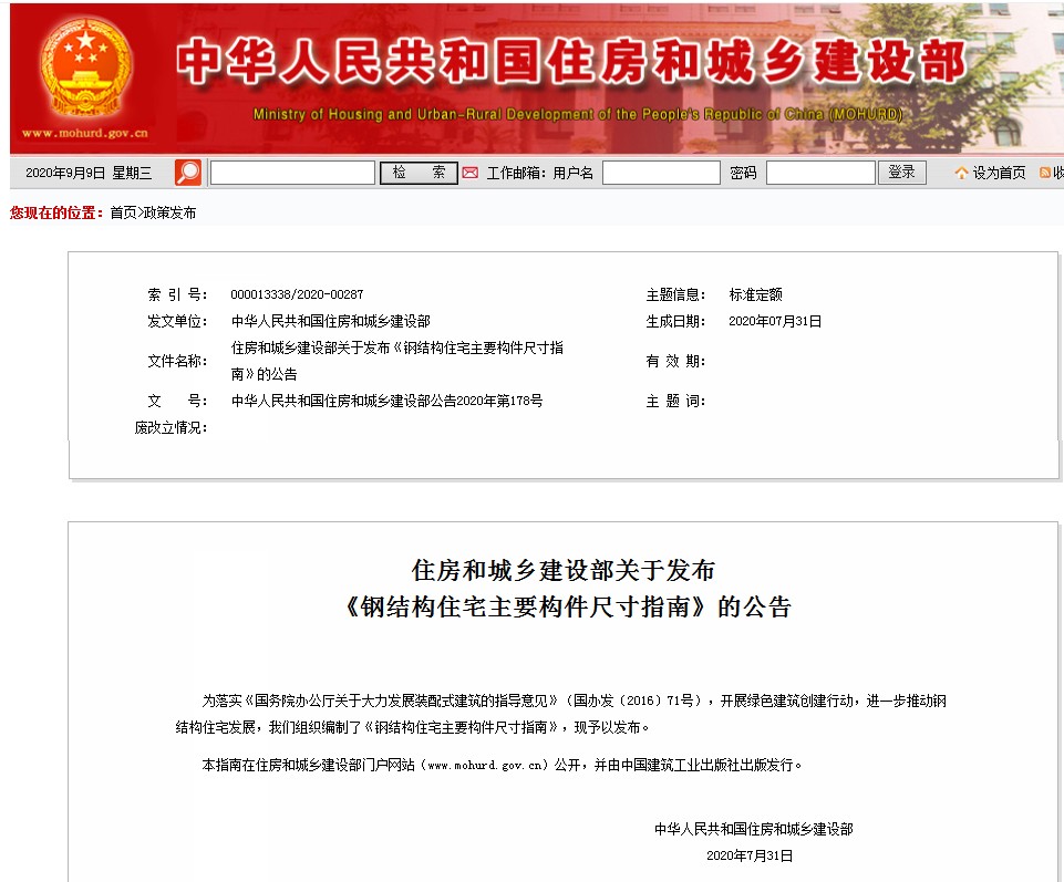 為落實《國務(wù)院辦公廳關(guān)于大力發(fā)展裝配式建筑的指導(dǎo)意見》、開展綠色建筑創(chuàng)建行動、進(jìn)一步推動鋼結(jié)構(gòu)住宅發(fā)展,住房和城鄉(xiāng)建設(shè)部組織編制了《鋼結(jié)構(gòu)住宅主要構(gòu)件尺寸指南》,并于日前印發(fā)。